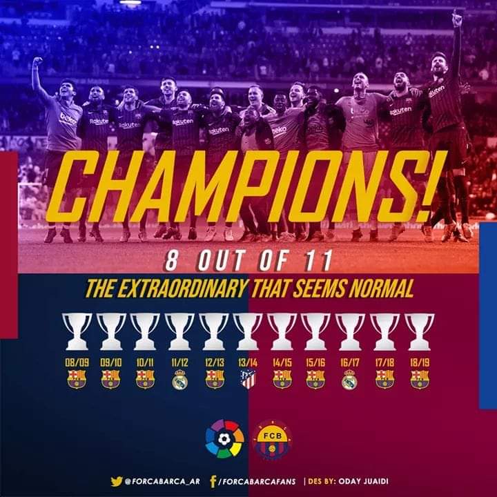 ![]() ![]() مبروووووووووووووووك اللقب 26 ========================= ![]() ميسي اول لاعب في تاريخ النادي يحقق الليغا 10 مرات