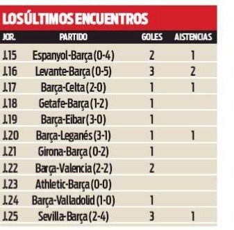 ليوميسي ضد إشبيلية: - المباريات: 37 - الأهداف: 36 - تمريرات حاسمة: 16 - ساهم في 1.4 هدف في كل مباراة |
