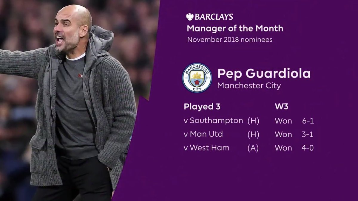 رسـميا | بيب غوارديولا مرشح للفوز بـ جائزة 'مدرب الشهر' لشهر نوفمبر في البريميرليغ.