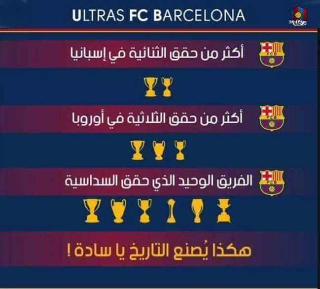 ![]() برشلونة اخر 10 سنوات : 7 القاب دوري اسباني. سته كأس ملك اسبانيا. 3 دوري ابطال اوروبا. 3 كأس عالم للاندية. 3 سوبر اوروبا. 5 سوبر اسباني. النادي الوحيد الذي حقق ثنائية 3 مرات في تاريخ كرة القدم. النادي الوحيد الذي حقق سداسية في سنه واحده عبر التاريخ. فخورين بهذا النادي العظيم ![]() |